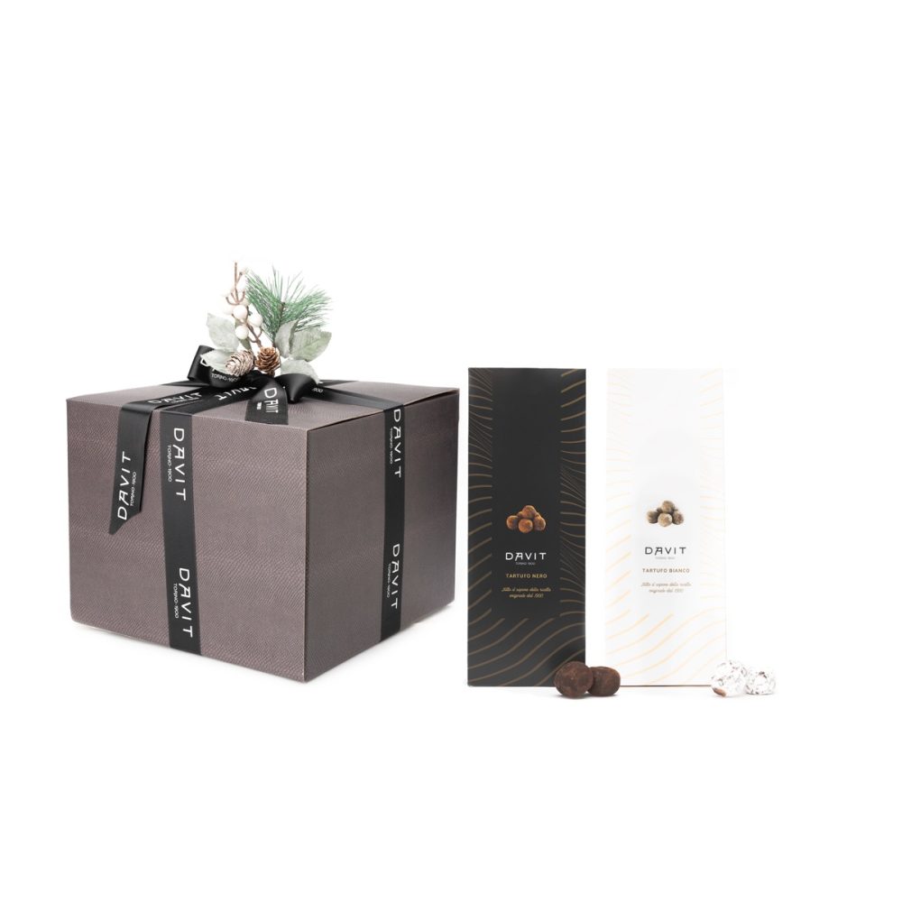 Un delizioso bocconcino di cioccolato nelle sue pregiate versioni di altissima qualità. Bianco e Nero riuniti in questa elegante confezione regalo per conquistare il cuore di tutti i tuoi familiari. La migliore dedica che si possa fare, ricoperta di amore e una sottile spolverata di cacao.