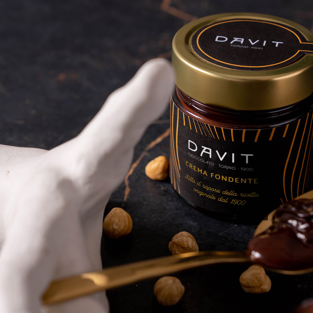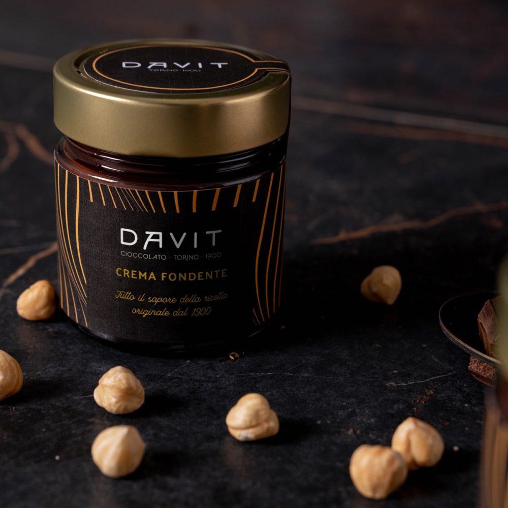 Cacao in polvere, olio di girasole, zucchero, pasta di NOCCIOLE IGP Piemonte , burro di cacao, Emulsionante: lecitina di girasole . Può contenere tracce di FRUTTA A GUSCIO, LATTE e SOIA.