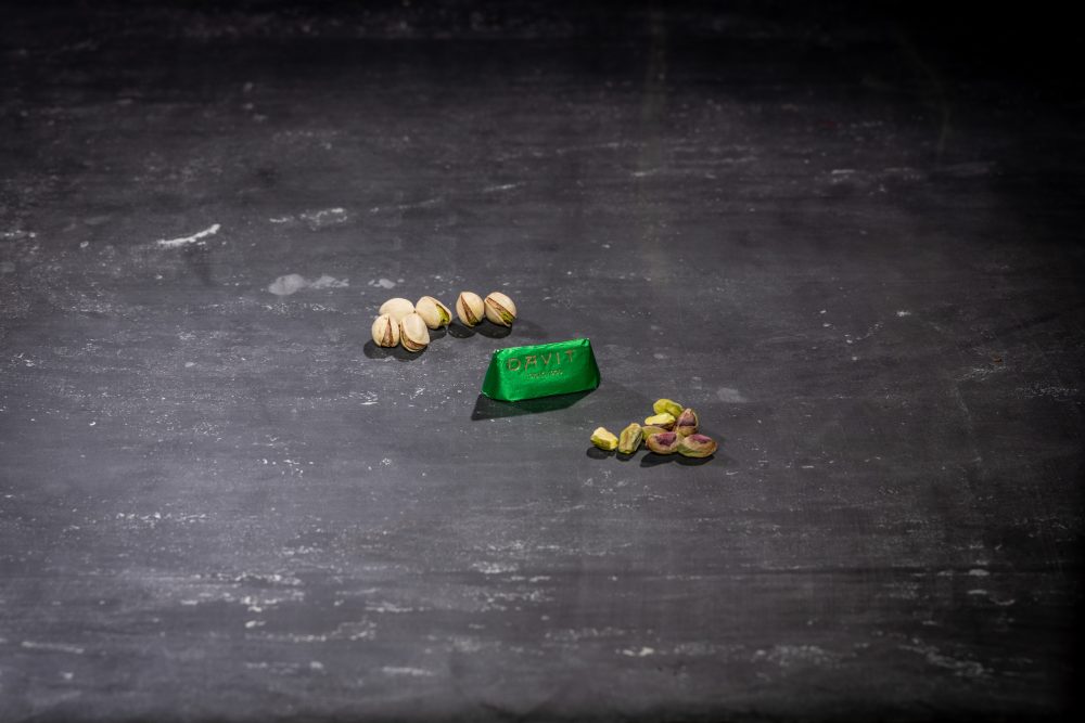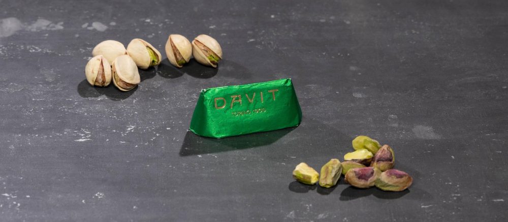 Zucchero, pasta di PISTACCHIO (30%), burro di cacao, LATTE intero in polvere, emulsionante: lecitina di SOIA, aroma naturale di vaniglia. Può contenere tracce di altra FRUTTA A GUSCIO, UOVA.